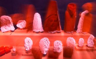The installation elicits prolonged attention, asking visitors to look intently and to spend time with the objects, contemplating their physical and emotional presence as well as the absences they evoke. The artworks may serve as tools for meditation, revealing a deeper potential that transcends their aesthetic value. An audio environment composed by Farooq’s collaborator Gabie Strong (Los Angeles, CA) sets a deliberately slow pace, encouraging six-minute intervals at each vantage point. Lyrical texts contributed by poet Jared Stanley (Reno, NV) unsettle the rigid format of institutional labels and imagine the objects’ own voices. Farooq’s film produced in collaboration with Mirjam Linschooten (Amsterdam, NL), The Museum Visits a Therapist, offers a reflection on trauma and recovery, personifying the museum and imagining therapeutic strategies for healing historic wounds.